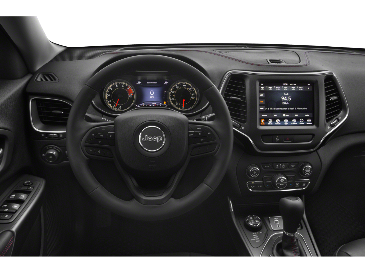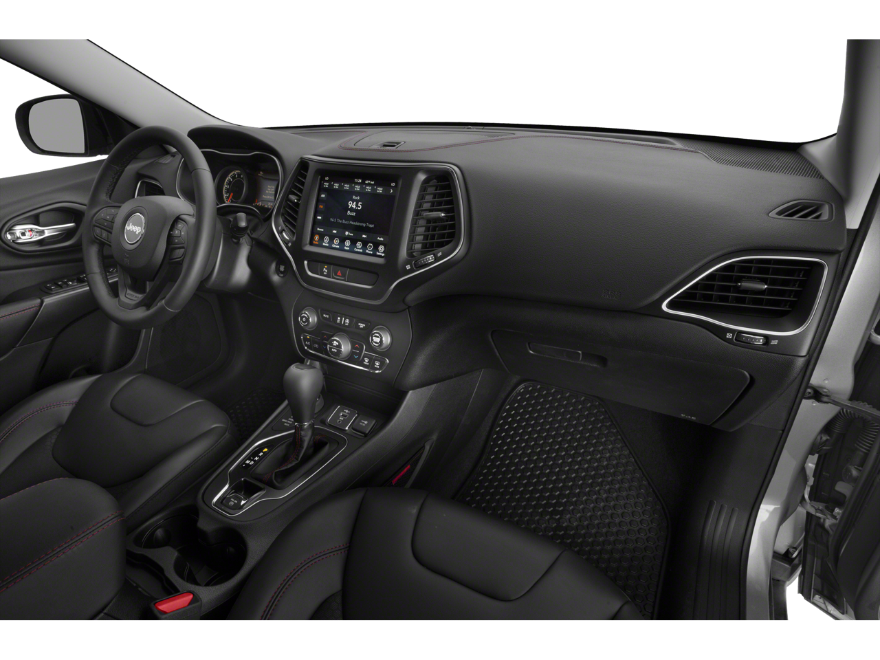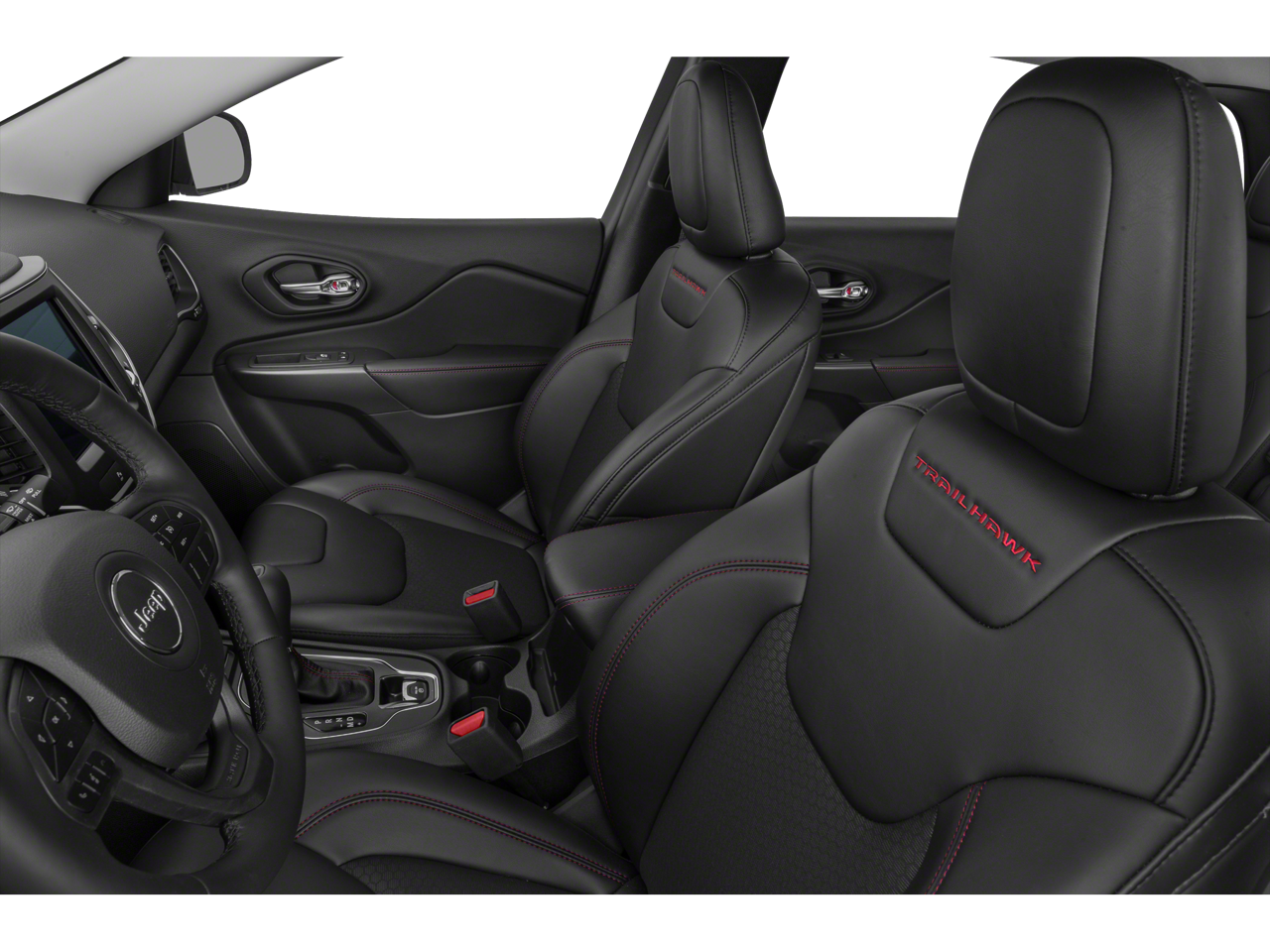 3.517 Axle Ratio, 4-Wheel Disc Brakes, 6 Speakers, 8.4 Touchscreen Display, ABS brakes, Air Conditioning, Alloy wheels, AM/FM radio: SiriusXM, Anti-whiplash front head restraints, Apple CarPlay, Apple CarPlay/Android Auto, Automatic temperature control, AutoStick Automatic Transmission, Auxiliary Transmission Oil Cooler, Brake assist, Cloth/Premium Vinyl Bucket Seats, Compass, Delay-off headlights, Driver door bin, Driver vanity mirror, Dual Bright Exhaust Tips, Dual front impact airbags, Dual front side impact airbags, Electronic Stability Control, Engine Oil Cooler, Exterior Mirrors Courtesy Lamps, Exterior Mirrors w/Supplemental Signals, Four wheel independent suspension, Front anti-roll bar, Front Bucket Seats, Front Center Armrest, Front dual zone A/C, Front fog lights, Front reading lights, Fully automatic headlights, Google Android Auto, GPS Antenna Input, Heated door mirrors, Hill Descent Control, Illuminated entry, Integrated Voice Command w/Bluetooth®, Knee airbag, Leather Shift Knob, Low tire pressure warning, Occupant sensing airbag, Off Road Suspension, Outside temperature display, Overhead airbag, Overhead console, Panic alarm, ParkView Rear Back-Up Camera, Passenger door bin, Passenger vanity mirror, Power door mirrors, Power driver seat, Power steering, Power windows, Quick Order Package 27E Trailhawk, Radio data system, Radio: Uconnect 4 w/8.4 Display, Rear anti-roll bar, Rear reading lights, Rear seat center armrest, Rear side impact airbag, Rear window defroster, Rear window wiper, Remote keyless entry, Roof rack: rails only, SiriusXM Satellite Radio, Speed control, Speed-sensing steering, Split folding rear seat, Spoiler, Steering wheel mounted audio controls, Stop-Start Multiple VSM System, Tachometer, Telescoping steering wheel, Tilt steering wheel, Traction control, Trip computer, Turn signal indicator mirrors, USB Host Flip, Variably intermittent wipers, Voltmeter, Wheels: 17 x 7.5 Painted Diamond Cut Aluminum.