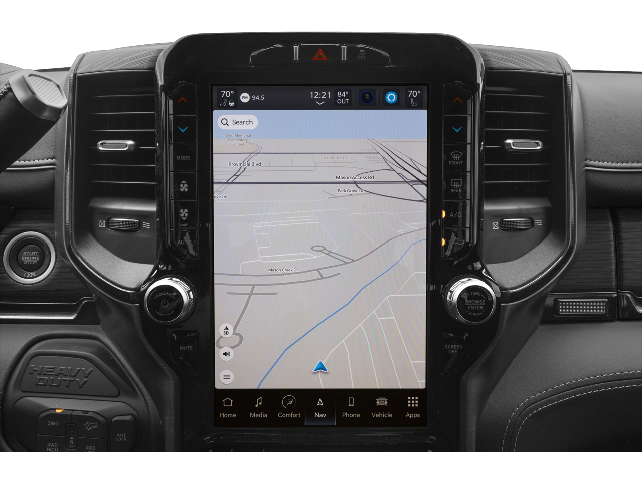 Uconnect infotainment with a large touchscreen, standard Apple Car Play and Android Auto, and available navigation keeps drivers connected.