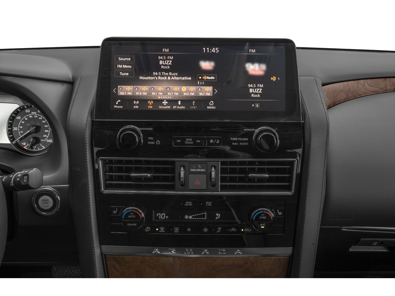 Armada SL, 4D Sport Utility, 5.6L V8 DOHC 32V LEV3-ULEV125 400hp, 7-Speed Automatic, 4WD, Blue Pearl, Charcoal Leather, 13 Speakers, 2.937 Axle Ratio, 2nd Row Captain's Chairs, 2nd Row Center Console w/Padded Armrest, 3rd Row Carpeted Floor Mats - Captain Seat, 3rd row seats: split-bench, 4-Wheel Disc Brakes, ABS brakes, Air Conditioning, Alloy wheels, AM/FM radio: SiriusXM, Anti-whiplash front head restraints, Auto High-beam Headlights, Auto tilt-away steering wheel, Auto-dimming door mirrors, Auto-dimming Rear-View mirror, Auto-leveling suspension, Automatic temperature control, Brake assist, Bumpers: body-color, Captain's Chairs Package, Delay-off headlights, Driver door bin, Driver vanity mirror, Dual front impact airbags, Dual front side impact airbags, Electronic Stability Control, Emergency communication system: NissanConnect Services, Exterior Parking Camera Rear, Four wheel independent suspension, Front anti-roll bar, Front Bucket Seats, Front Center Armrest, Front dual zone A/C, Front fog lights, Front reading lights, Fully automatic headlights, Garage door transmitter: HomeLink, Heated door mirrors, Heated Front Bucket Seats, Heated front seats, Heated steering wheel, HVAC memory, Illuminated entry, Knee airbag, Leather Shift Knob, Leather steering wheel, Leather-Appointed Seat Trim, Low tire pressure warning, Memory seat, Navigation System, Occupant sensing airbag, Outside temperature display, Overhead airbag, Overhead console, Panic alarm, Passenger door bin, Passenger vanity mirror, Power door mirrors, Power driver seat, Power Liftgate, Power moonroof, Power passenger seat, Power steering, Power windows, Radio: NissanConnect w/SiriusXM, Rear air conditioning, Rear anti-roll bar, Rear reading lights, Rear seat center armrest, Rear window defroster, Rear window wiper, Reclining 3rd row seat, Remote keyless entry, Security system, Speed control, Speed-sensing steering, Speed-Sensitive Wipers, Split folding rear seat, Spoiler, Steering wheel memory, Steering wheel mounted audio controls, Tachometer, Telescoping steering wheel, Tilt steering wheel, Traction control, Trip computer, Turn signal indicator mirrors, Variably intermittent wipers, Voltmeter, Wheels: 20 x 8J Painted Alloy, Armada SL, 4D Sport Utility, 5.6L V8 DOHC 32V LEV3-ULEV125 400hp, 7-Speed Automatic, 4WD, Blue Pearl, Charcoal Leather.