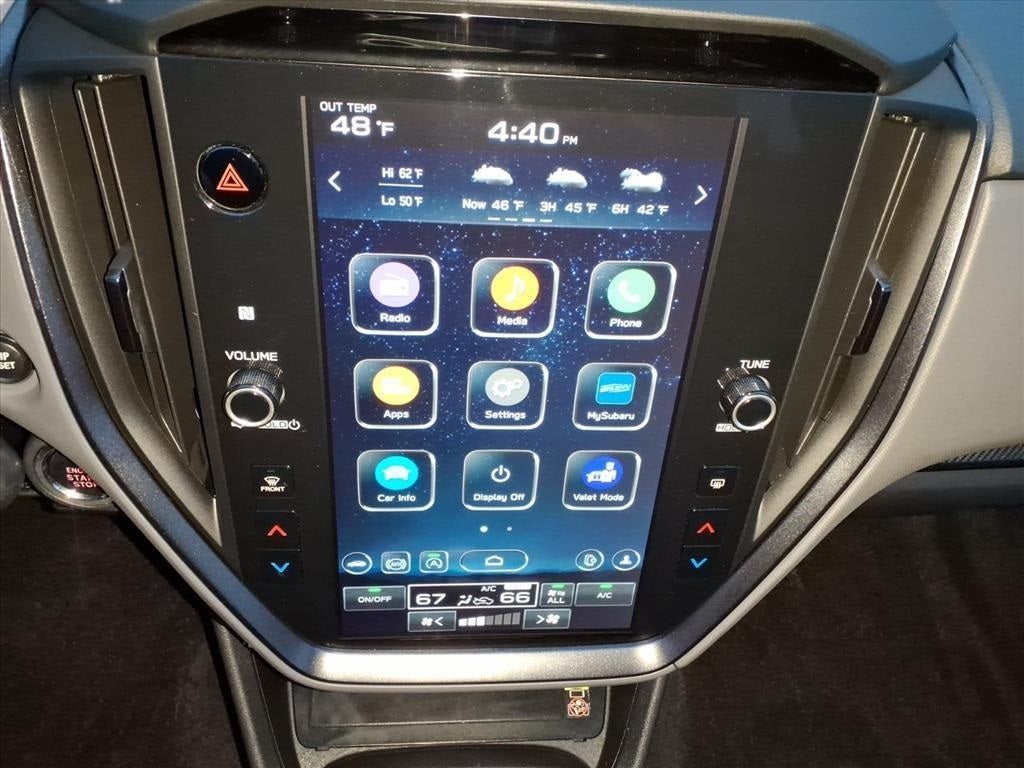 - Radio: Subaru STARLINK 11.6" Multimedia Plus Sys -inc: AM/FM stereo, HD Radio, multi-touch gesture high resolution display screen, voice activated controls, Bluetooth® audio streaming and hands-free phone connectivity, Bluetooth® hands-free SMS text messaging connectivity, iPod control capability, SiriusXM All Access Radio (4 months free trial included/subscription required after), SiriusXM Travel Link (4 months free trial included/subscription required after), smartphone integration: Android Auto and Apple CarPlay w/full screen view and wireless connection, USB and Over The Air (OTA) audio system update, steering wheel audio system and Bluetooth® control switches, 6 speakers (2 dash panel tweeter, 2 front door and 2 rear door), illuminated 3.5mm auxiliary input jack, illuminated front USB A and C input/charge ports and illuminated rear USB A and C charge ports