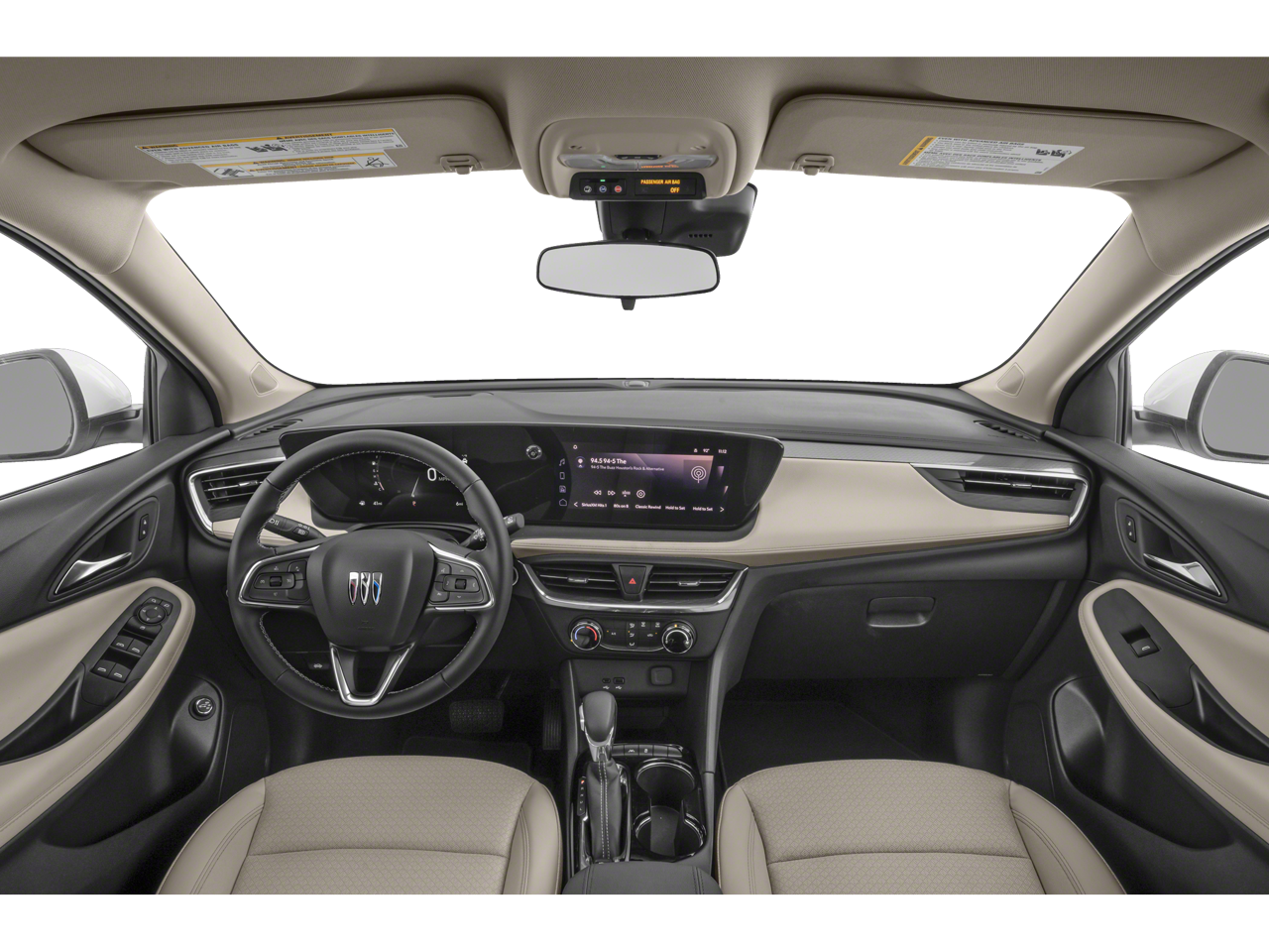 2 USB Ports (1 Type-A, 1 Type-C), 4-Way Manual Passenger Seat Adjuster, 4-Wheel Disc Brakes, 5.45 Final Drive Axle Ratio, 6 Speakers, 6-Way Manual Driver Seat Adjuster, ABS brakes, Air Conditioning, Alloy wheels, AM/FM radio: SiriusXM, Auto High-beam Headlights, Automatic temperature control, Brake assist, Bumpers: body-color, Cloth w/Leatherette Seat Trim, Compass, Delay-off headlights, Driver door bin, Driver vanity mirror, Dual front impact airbags, Dual front side impact airbags, Electronic Stability Control, Emergency communication system: OnStar and Buick connected services capable, Enhanced Performance 6-Speaker System, Front anti-roll bar, Front Bucket Seats, Front Center Armrest, Front License Plate Bracket, Front reading lights, Front wheel independent suspension, Fully automatic headlights, Heated door mirrors, Illuminated entry, Knee airbag, Low tire pressure warning, Occupant sensing airbag, Outside temperature display, Overhead airbag, Overhead console, Panic alarm, Passenger door bin, Passenger vanity mirror, Power door mirrors, Power steering, Power windows, Preferred Equipment Group 1SB, Radio data system, Radio: Audio System w/AM/FM, Rear reading lights, Rear side impact airbag, Rear window defroster, Rear window wiper, Remote keyless entry, Ride & Handling Suspension, Security system, SiriusXM Trial Subscription, Speed control, Speed-sensing steering, Split folding rear seat, Spoiler, Steering wheel mounted audio controls, Tachometer, Telescoping steering wheel, Tilt steering wheel, Traction control, Trip computer, Variably intermittent wipers, Wheels: 18 Bright Silver Painted Aluminum, Wireless Apple CarPlay/Wireless Android Auto.