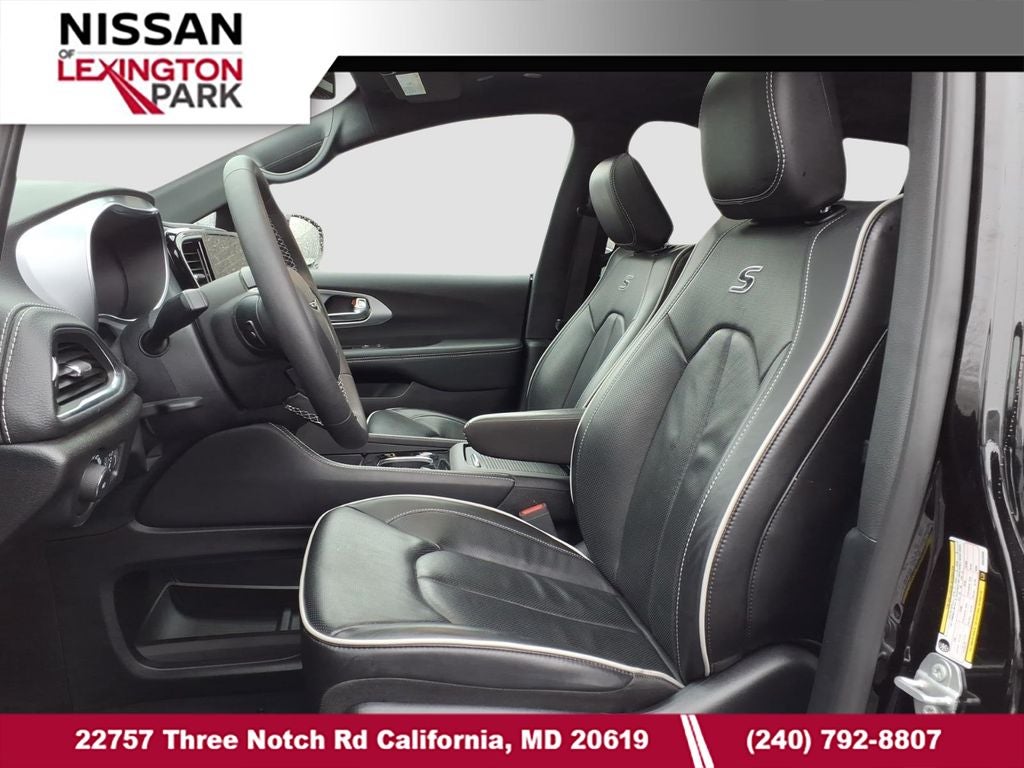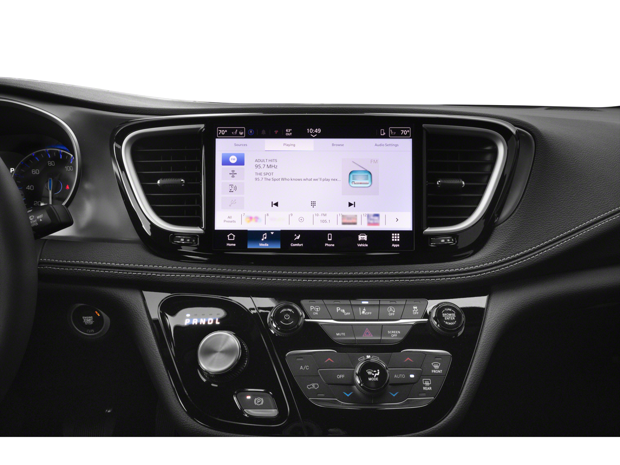 Pacifica Limited, 4D Passenger Van, 3.6L V6 24V VVT, 9-Speed 948TE Automatic, FWD, Diamond Black Crystal Pearlcoat, Black Leather, 13 Speakers, 3.25 Axle Ratio, 3rd row seats: split-bench, 4-Wheel Disc Brakes, ABS brakes, Air Conditioning, Alloy wheels, AM/FM radio: SiriusXM 360L, Apple CarPlay/Android Auto, Audio memory, Auto-dimming Rear-View mirror, Automatic temperature control, Black Seats, Brake assist, Bumpers: body-color, Compass, Delay-off headlights, Driver door bin, Driver vanity mirror, Driver's Seat Mounted Armrest, Dual front impact airbags, Dual front side impact airbags, Electronic Stability Control, Emergency communication system: Chrysler Connect, Four wheel independent suspension, Front anti-roll bar, Front Bucket Seats, Front dual zone A/C, Front fog lights, Front reading lights, Fully automatic headlights, Garage door transmitter, Heated door mirrors, Heated front seats, Heated rear seats, Heated steering wheel, Illuminated entry, Integrated Active Noise Cancellation, Knee airbag, Low tire pressure warning, Memory seat, Nappa Leather Bucket Seats with S Logo, Navigation System, Occupant sensing airbag, Outside temperature display, Overhead airbag, Overhead console, Panic alarm, ParkView Rear Back-Up Camera, Passenger door bin, Passenger seat mounted armrest, Passenger vanity mirror, Power door mirrors, Power driver seat, Power Liftgate, Power moonroof, Power passenger seat, Power steering, Power windows, Quick Order Package 27P, Radio data system, Radio: Uconnect 5 Nav with 10.1 Display, Rain sensing wipers, Rear air conditioning, Rear reading lights, Rear window defroster, Rear window wiper, Reclining 3rd row seat, Remote keyless entry, Roof rack, Security system, Speed control, Split folding rear seat, Spoiler, Steering wheel mounted audio controls, Tachometer, Telescoping steering wheel, Tilt steering wheel, Touring Suspension, Traction control, Trip computer, Turn signal indicator mirrors, Variably intermittent wipers, Ventilated front seats, Voltmeter, Wheels: 20 x 7.5 S-Model Aluminum Design 1, Pacifica Limited, 4D Passenger Van, 3.6L V6 24V VVT, 9-Speed 948TE Automatic, FWD, Diamond Black Crystal Pearlcoat, Black Leather.