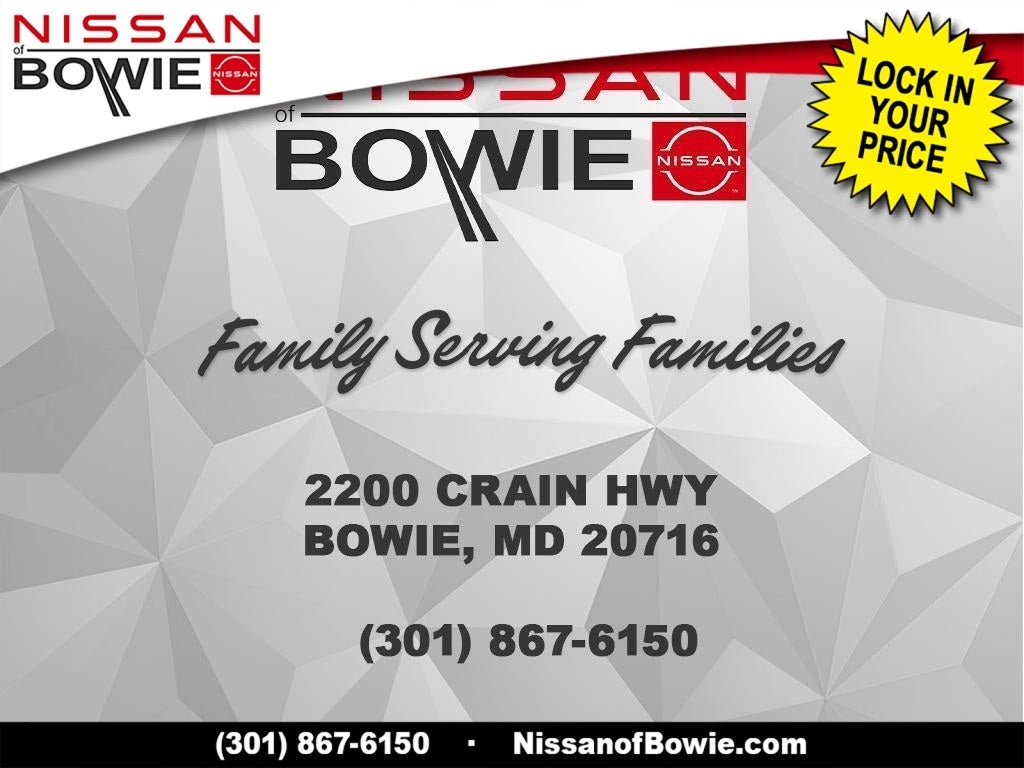 Please contact a Nissan of Bowie Product Specialist at 301-867-6150 for more information. All our prices exclude tax, tags, dealer processing fee.